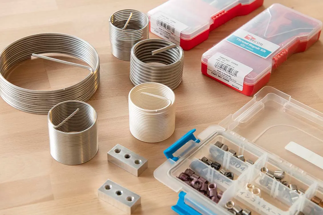 それでは困りますので雌ネジの穴にコイル状のパーツを埋め込んでネジ山を復活させる。