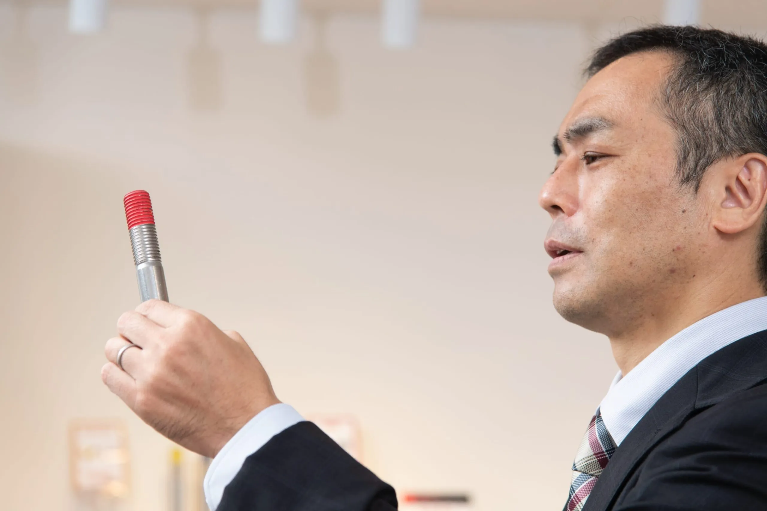 ネジや図面を見ながらお客様から説明していただければ、ああなるほど、ここが問題なんだな、こうすれば良いなというのはざっくり予測がつきます。ですが、できる限り作業員の方が締付けを行う現場にも入らせていただくようにしているのです。というのも、直接現場を見て初めて発見することがあるからです。締付け作業はどうやっている? 作業員はどこでやりにくさを感じてるのか? 「たしかにおっしゃったようなところが問題ですが、根本の原因はここではありませんか」と、お客様も気づいていない課題に気づけたりしますから。通された部屋で話して終わりというのは、少し物足りないですね。