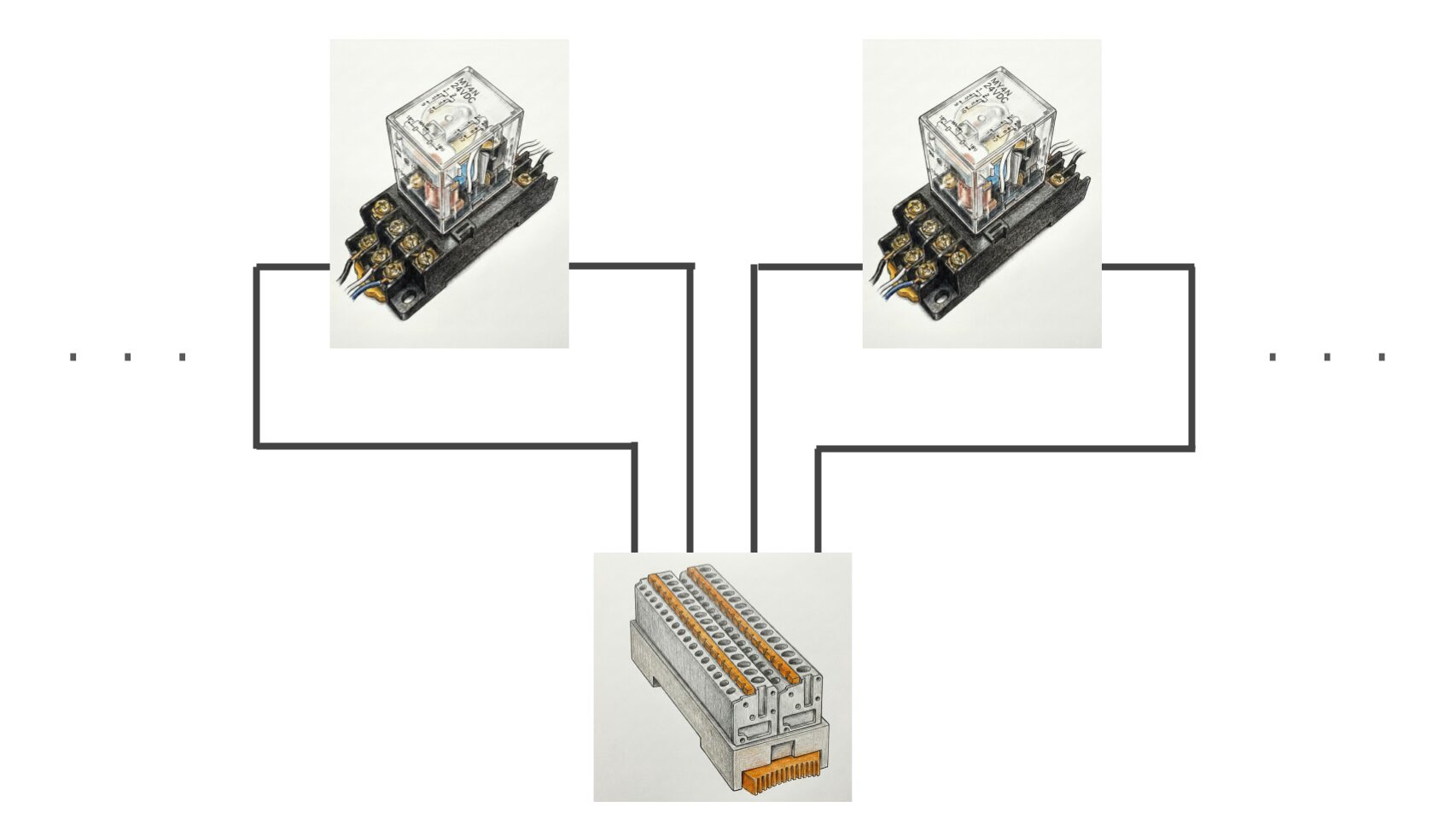 例えばテスターをあてて配線を調べる際、盤内で各リレーの配置が離れているとプローブが届かないという事態になることがよくあります。