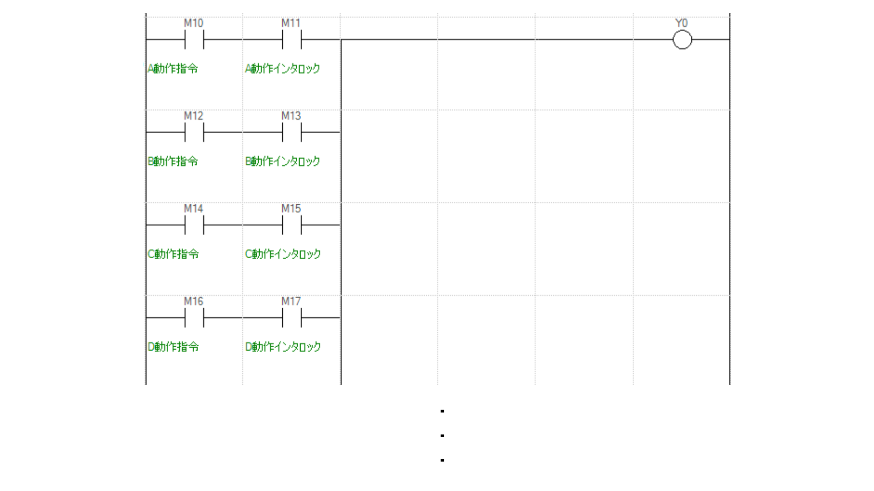 規模の大きい生産設備のラダー回路を作成している中で、大量の接点をORでつなぐ必要がある箇所が出てきます。