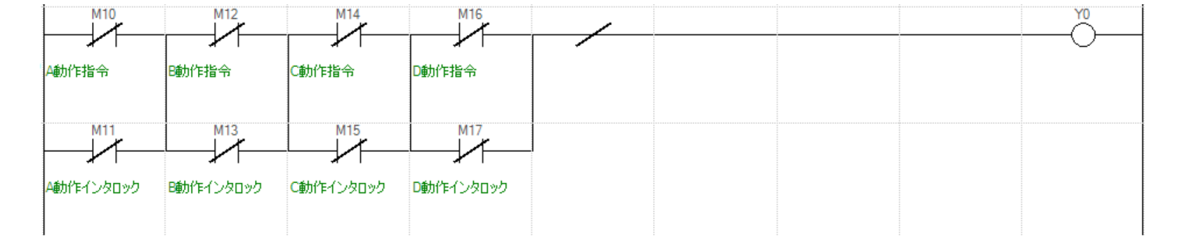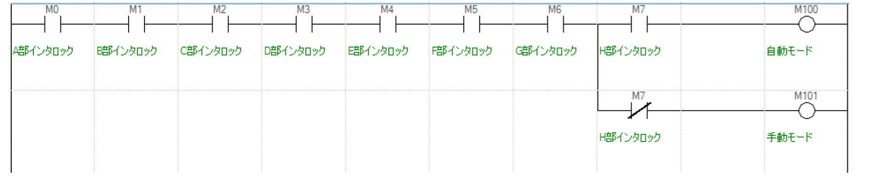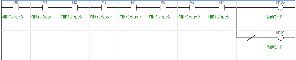 例えば「M0~M6で定義したインタロックの直列A接点の箇所は共通で使いたいが、M7で定義したインタロックについては自動モードはA接点を、手動モードではB接点を使用したい」という場合があったとします(実際にもしばしばあります)。