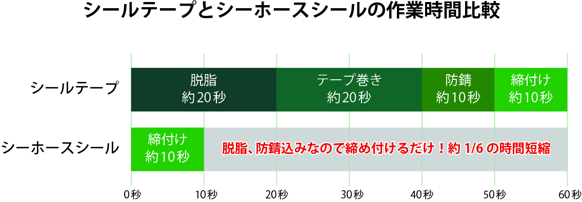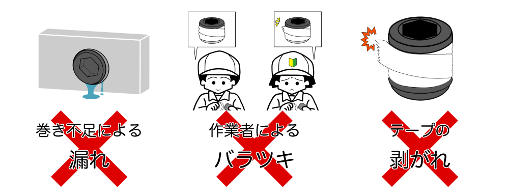 シールテープや液状シール剤のように手間がなく、作業時間を大幅に短縮することができます。